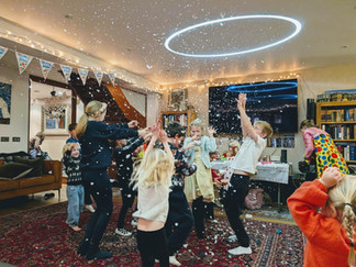 For the last bit of the party the entertainer played some games with them. Balloon swords came out and the kids were in heaven as the snow came down. It was such a fun birthday party. I loved seeing all my school mum friends there.
